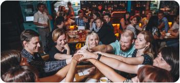 Интеллектуально-развлекательная игра. Азартное соревнование для команд от 2 до 10 человек. Смесь «Что? Где? Когда?», «Угадай мелодию», «Где Логика?».100-150 участников собираются в хорошем баре. Под вкусную еду и напитки заводят новые знакомства и отлично проводят время За это они готовы заплатить и возвращаются снова.